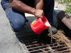 An illicit discharge is any discharge to a municipal storm sewer system - storm drains, pipes, and ditches - that is not composed entirely of storm water. Pollutants end up in storm sewer systems in a number of ways, many of which are easily preventable. In some instances, companies or residences have waste pipes tapped into stormwater pipes. In other cases, individuals use the storm drain inlets to dispose of various types of waste. Disposal of anything other than storm water in storm sewers is illegal!